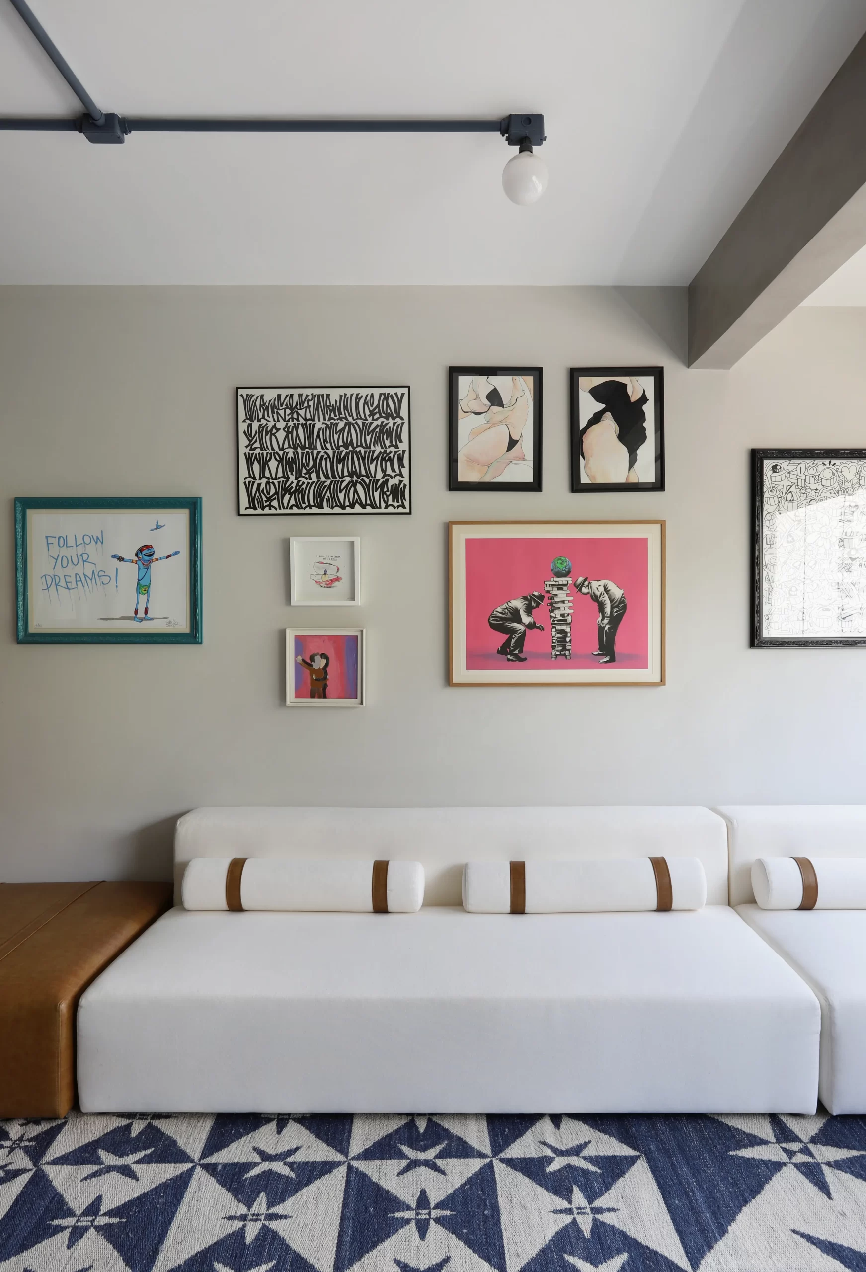 Inspirado no letreiro existente em uma das vigas do apartamento, com a frase “Boa noite povo que eu cheguei”, referência à música Baianá, do Barbatuques, o projeto parte da vontade dos moradores cariocas de trazer cor e alegria para o novo lar paulistano.