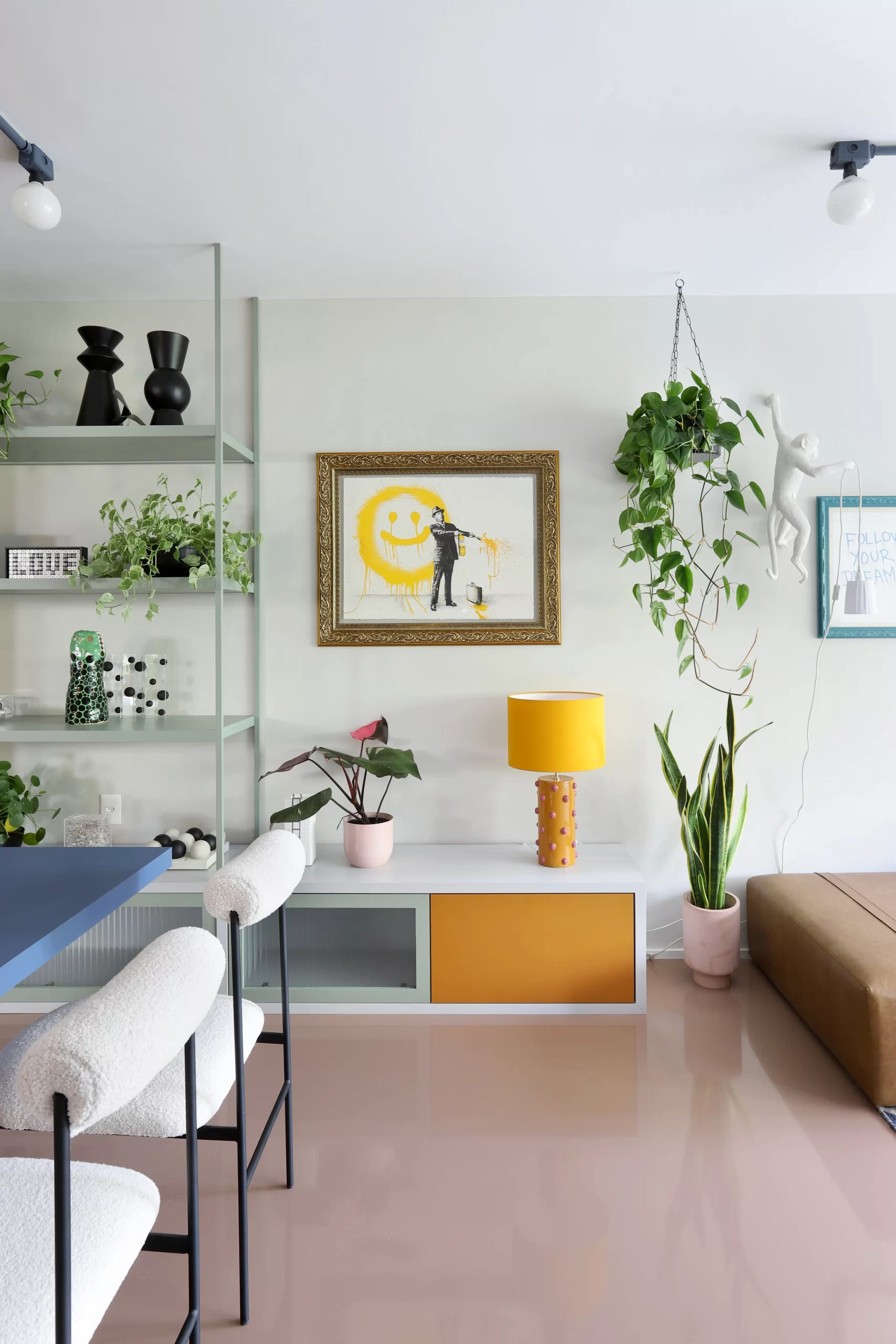 Com 90m² no bairro de Perdizes, o apê recebeu um respiro afetivo com base na cor, na textura, nas plantas, e em escolhas que combinam funcionalidade e informalidade com um toque vintage.