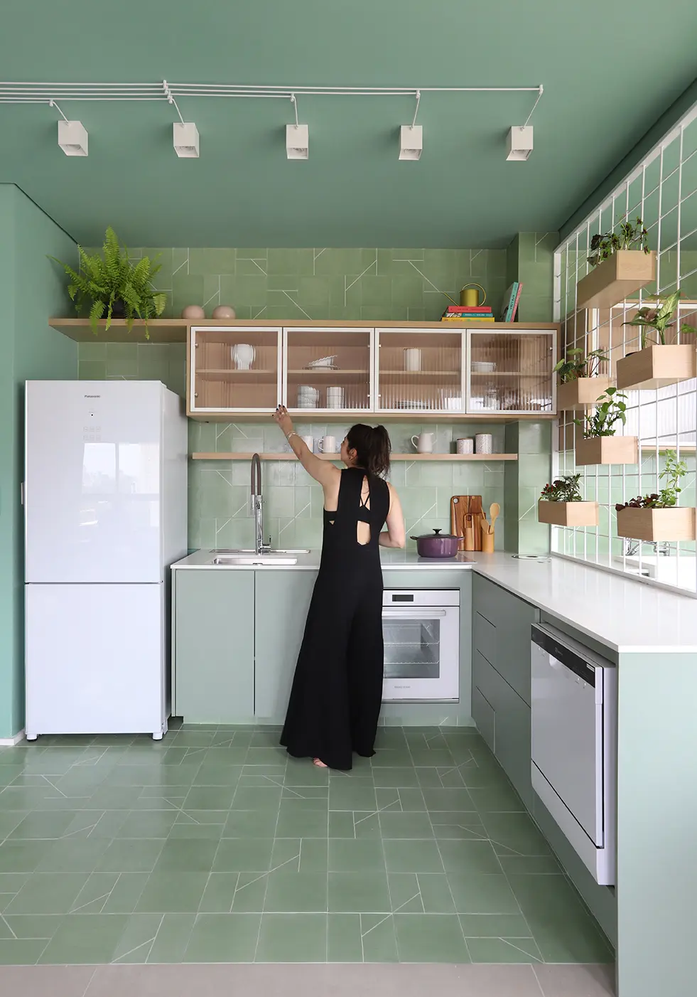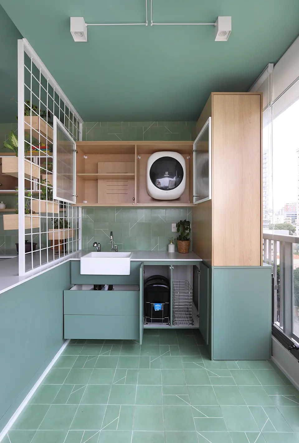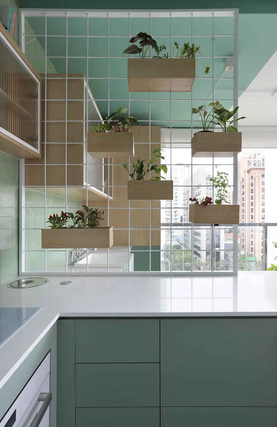Elementos como cristaleira em serralheria com vidro canelado, prateleiras com LED embutido e armários com dupla função aparecem como soluções práticas para o dia a dia.